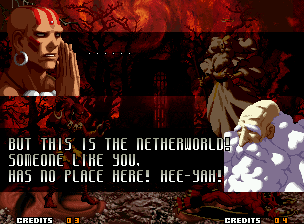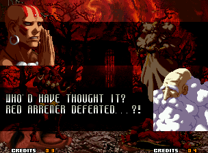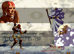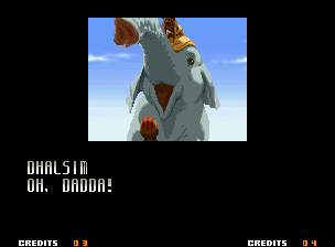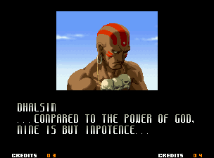| Home | BackTweet | - Good Endings - | Bad Ending | | Kyo | Iori | Orochi Iori | Kasumi | Kim | Ryo | Mai | Terry | Geese | Goenitz | Choi | Mars People | Genjyuro | Shiki | Earthquake | Mr.Karate | Shin Mr.Karate | | Ryu | Ken | Violent Ken | Chun-Li | Guile | - Dhalsim - | Tessa | Dan | Demitri | Hugo | Zero | Balrog | Vega | Sagat | M.Bison | Akuma | Shin Akuma | If The Conditions Were Met To Fight Athena