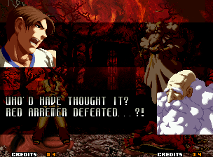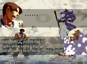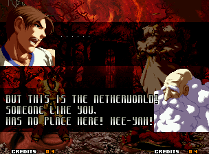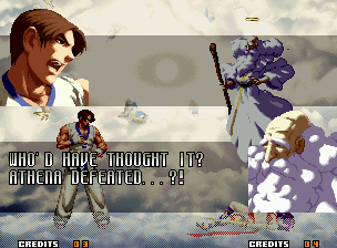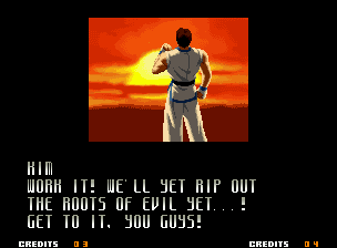 | Home | BackTweet | - Good Endings - | Bad Ending | | Kyo | Iori | Orochi Iori | Kasumi | - Kim - | Ryo | Mai | Terry | Geese | Goenitz | Choi | Mars People | Genjyuro | Shiki | Earthquake | Mr.Karate | Shin Mr.Karate | | Ryu | Ken | Violent Ken | Chun-Li | Guile | Dhalsim | Tessa | Dan | Demitri | Hugo | Zero | Balrog | Vega | Sagat | M.Bison | Akuma | Shin Akuma | If The Conditions Were Met To Fight Athena