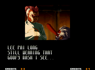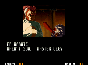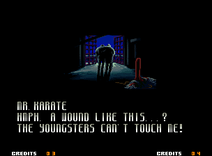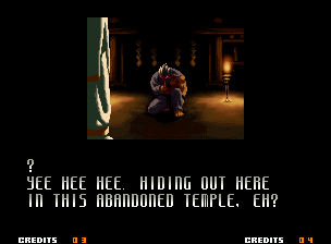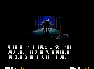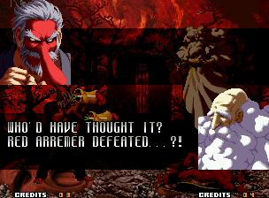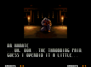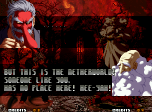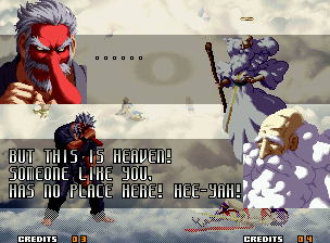 | Home | BackTweet | - Good Endings - | Bad Ending | | Kyo | Iori | Orochi Iori | Kasumi | Kim | Ryo | Mai | Terry | Geese | Goenitz | Choi | Mars People | Genjyuro | Shiki | Earthquake | Mr.Karate | - Shin Mr.Karate - | | Ryu | Ken | Violent Ken | Chun-Li | Guile | Dhalsim | Tessa | Dan | Demitri | Hugo | Zero | Balrog | Vega | Sagat | M.Bison | Akuma | Shin Akuma | If The Conditions Were Met To Fight Athena