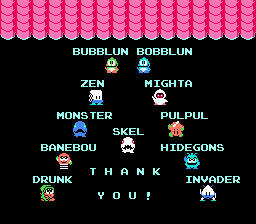 | 1 Player Mode | 2 Players Bubble Bobble Mode | - 2 Players Super Bubble Bobble Mode - | | - Found The Crystal Ball - | Missed The Crystal Ball | |