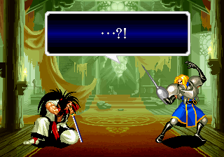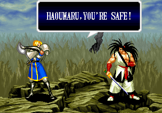 | Haohmaru | Kazuki Kazama | Sogetsu Kazama | Galford | Jubei Yagyu | Basara Kubikiri | Shizumaru Hisame | Rimururu | - Charlotte - | | Genjuro Kibagami | Ukyo Tachibara | Hanzo Hattori | Kyoshiro Senryo | Gaira Kafuin | Nakoruru | Tam Tam | Amakusa Shirou | | - Good Endings - | Bad Ending | |