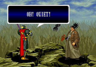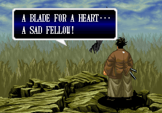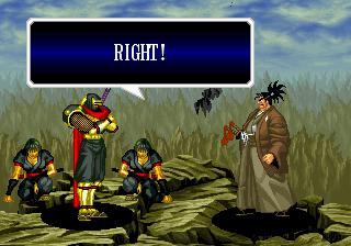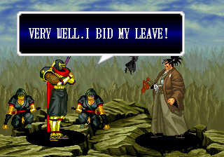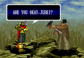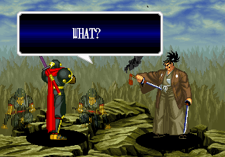 | Haohmaru | Kazuki Kazama | Sogetsu Kazama | Galford | Jubei Yagyu | Basara Kubikiri | Shizumaru Hisame | Rimururu | Charlotte | | Genjuro Kibagami | Ukyo Tachibara | - Hanzo Hattori - | Kyoshiro Senryo | Gaira Kafuin | Nakoruru | Tam Tam | Amakusa Shirou | | - Good Endings - | Bad Ending | |