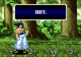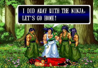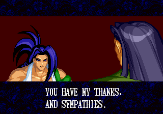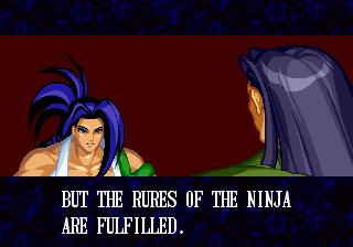 | Home | BackTweet | - Good Endings - | Bad Ending | | Haohmaru | Kazuki Kazama | - Sogetsu Kazama - | Galford | Jubei Yagyu | Basara Kubikiri | Shizumaru Hisame | Rimururu | Charlotte | | Genjuro Kibagami | Ukyo Tachibara | Hanzo Hattori | Kyoshiro Senryo | Gaira Kafuin | Nakoruru | Tam Tam | Amakusa Shirou |