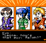 | Home | BackTweet | - K.O.F. Mode - | Making Mode | | - Team Play - | Single Play | | Standard Teams | - Special Teams - | Edit Teams | Athena, Chris, Shingo Team Athena, Mai, Yuri Team Chris, Kyo, Saisyu Team Iori, Kyo, Shingo Team Kyo, Iori, Terry Team Kyo, Leona, Ryo Team Kyo, Ryo, Terry Team