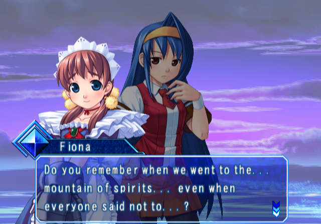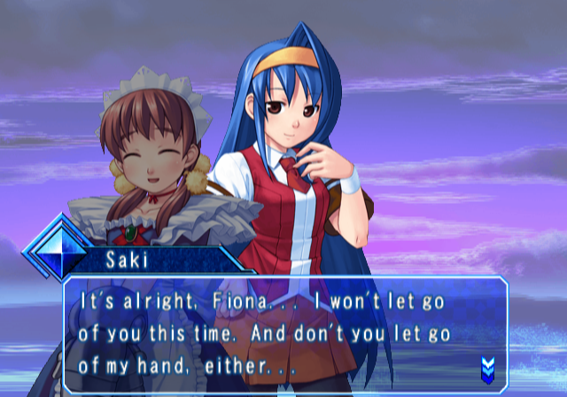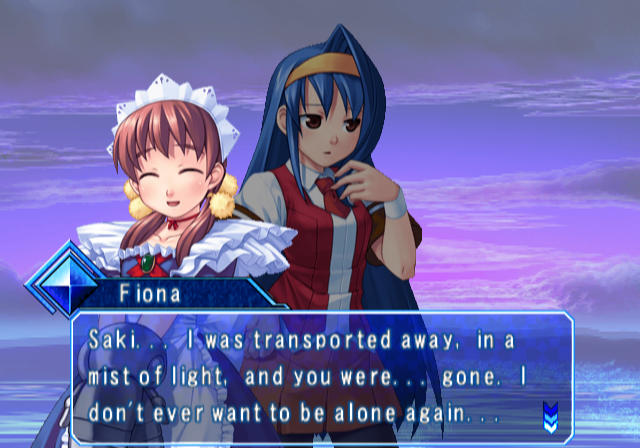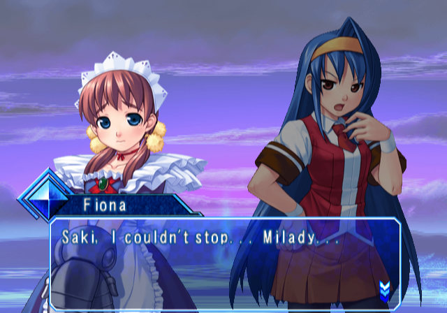 | - Fiona Mayfield - | Heart Aino | Kamui Tokinomiya | Kira Daidohji | Konoha | Lieselotte Achenbach | Lilica Felchenerow | Maori Kasuga | Mei-Fang | Saki Tsuzura | Yoriko Yasuzumi | | Good Ending | - Bad Ending - | | - Story Mode - | Arcade Mode | |