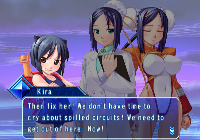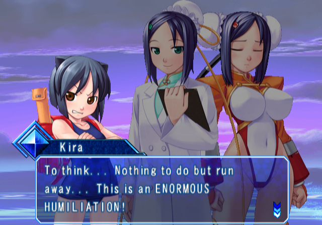 | Fiona Mayfield | Heart Aino | Kamui Tokinomiya | - Kira Daidohji - | Konoha | Lieselotte Achenbach | Lilica Felchenerow | Maori Kasuga | Mei-Fang | Saki Tsuzura | Yoriko Yasuzumi | | Good Ending | - Bad Ending - | | - Story Mode - | Arcade Mode | |