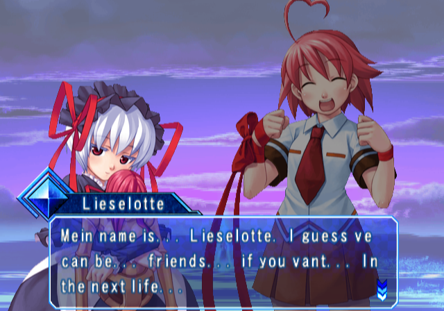 | Fiona Mayfield | Heart Aino | Kamui Tokinomiya | Kira Daidohji | Konoha | - Lieselotte Achenbach - | Lilica Felchenerow | Maori Kasuga | Mei-Fang | Saki Tsuzura | Yoriko Yasuzumi | | Good Ending | - Bad Ending - | | - Story Mode - | Arcade Mode | |