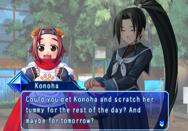 | Home | BackTweet | - Story Mode - | Arcade Mode | | - Good Ending - | Bad Ending | | Fiona Mayfield | Heart Aino | Kamui Tokinomiya | Kira Daidohji | - Konoha - | Lieselotte Achenbach | Lilica Felchenerow | Maori Kasuga | Mei-Fang | Saki Tsuzura | Yoriko Yasuzumi |