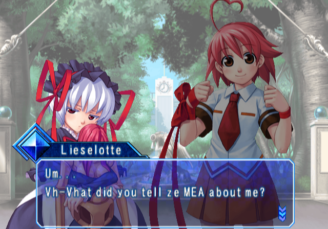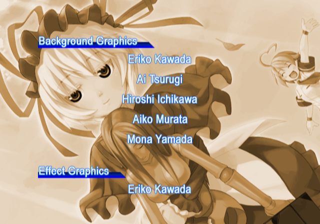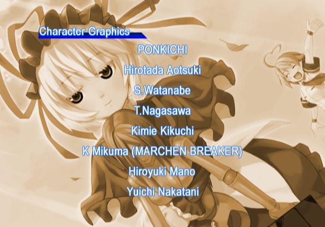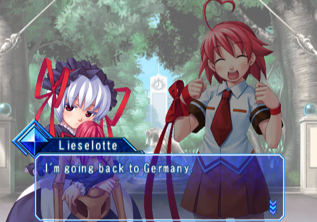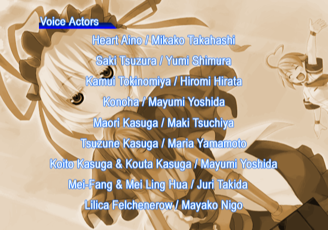 | Fiona Mayfield | Heart Aino | Kamui Tokinomiya | Kira Daidohji | Konoha | - Lieselotte Achenbach - | Lilica Felchenerow | Maori Kasuga | Mei-Fang | Saki Tsuzura | Yoriko Yasuzumi | | - Good Ending - | Bad Ending | | - Story Mode - | Arcade Mode | |