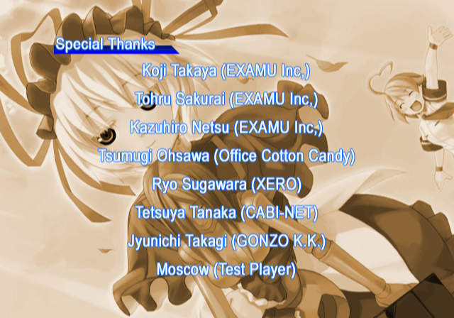 | Home | BackTweet | - Story Mode - | Arcade Mode | | - Good Ending - | Bad Ending | | Fiona Mayfield | Heart Aino | Kamui Tokinomiya | Kira Daidohji | Konoha | - Lieselotte Achenbach - | Lilica Felchenerow | Maori Kasuga | Mei-Fang | Saki Tsuzura | Yoriko Yasuzumi |