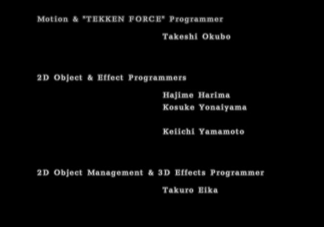 | - Bryan - | Christie / Eddy | Combot | Heihachi | Hwoarang | Jin | Julia | Kazuya | King | Kuma | Law | Lee / Violet | Lei | Marduk | Nina | Panda | Paul | Steve | Xiaoyu / Miharu | Yoshimitsu | | - Story Battle - | Arcade | Time Attack | Tekken Force | |