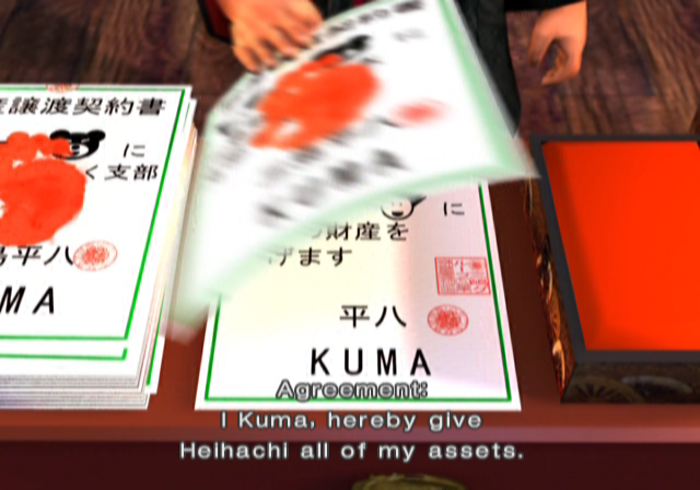 | Bryan | Christie / Eddy | Combot | Heihachi | Hwoarang | Jin | Julia | Kazuya | King | - Kuma - | Law | Lee / Violet | Lei | Marduk | Nina | Panda | Paul | Steve | Xiaoyu / Miharu | Yoshimitsu | | - Story Battle - | Arcade | Time Attack | Tekken Force | |