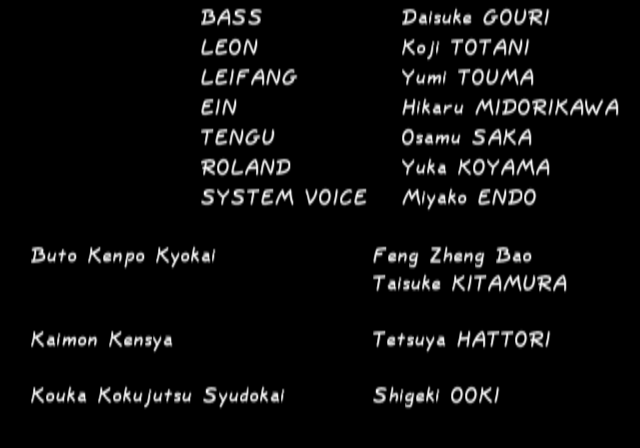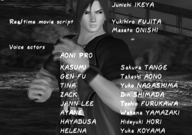 | - Ayane - | Bass Armstrong | Ein | Gen-Fu | Helena | Jann-Lee | Kasumi | Lei-Fang | Leon | Ryu Hayabusa | Tina Armstrong | Zack | | - Story - | Time Attack | Survival | Tag Battle | |