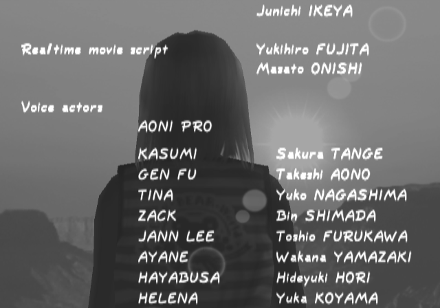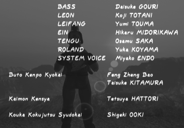 | Ayane | - Bass Armstrong - | Ein | Gen-Fu | Helena | Jann-Lee | Kasumi | Lei-Fang | Leon | Ryu Hayabusa | Tina Armstrong | Zack | | - Story - | Time Attack | Survival | Tag Battle | |