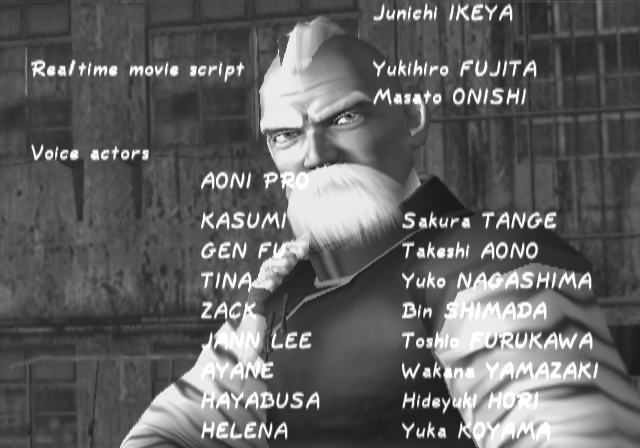 | Ayane | Bass Armstrong | Ein | - Gen-Fu - | Helena | Jann-Lee | Kasumi | Lei-Fang | Leon | Ryu Hayabusa | Tina Armstrong | Zack | | - Story - | Time Attack | Survival | Tag Battle | |