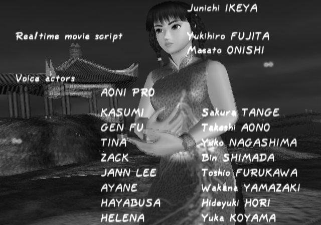 | Ayane | Bass Armstrong | Ein | Gen-Fu | Helena | - Jann-Lee - | Kasumi | Lei-Fang | Leon | Ryu Hayabusa | Tina Armstrong | Zack | | - Story - | Time Attack | Survival | Tag Battle | |