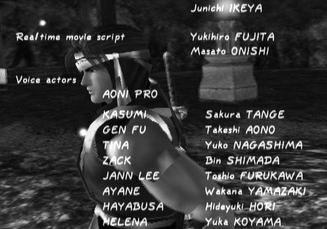 | Ayane | Bass Armstrong | Ein | Gen-Fu | Helena | Jann-Lee | - Kasumi - | Lei-Fang | Leon | Ryu Hayabusa | Tina Armstrong | Zack | | - Story - | Time Attack | Survival | Tag Battle | |