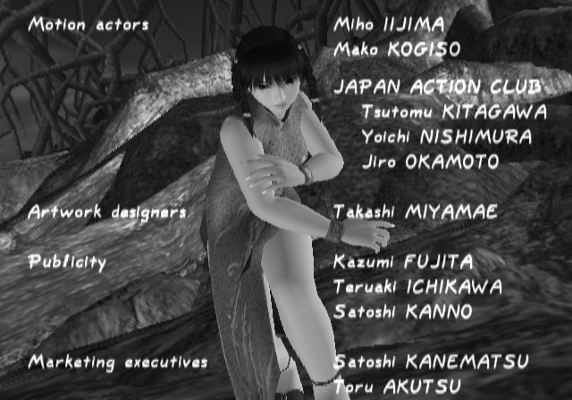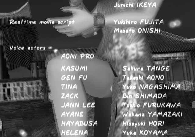 | Ayane | Bass Armstrong | Ein | Gen-Fu | Helena | Jann-Lee | Kasumi | - Lei-Fang - | Leon | Ryu Hayabusa | Tina Armstrong | Zack | | - Story - | Time Attack | Survival | Tag Battle | |
