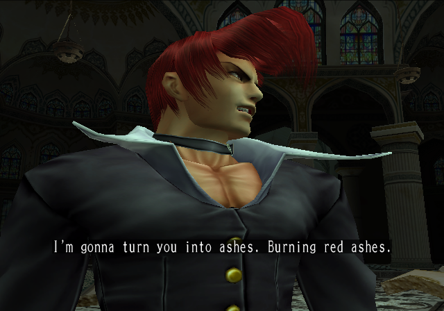 | Home | BackTweet | Alba Meira | Athena Asamiya | Billy Kane | Chae Lim | Clark Still | Duke | - Iori Yagami - | K' | Kula Diamond | Kyo Kusanagi | Leona | Lien Neville | Luise Meyrink | | Mai Shiranui | Maxima | Mignon Beart | Nagase | Ralf Jones | Rock Howard | Ryo Sakazaki | Seth | Soiree Meira | Terry Bogard | Yuri Sakazaki | | Armor Ralf / B. Jenet / Fio / Hanzo / Hyena / Jivatma / Kim / Kyo Classic / Lilly / Mr. Karate / Nightmare Geese / Ninon / Richard / Wild Wolf |