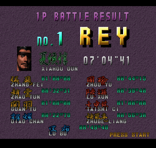 | Zhao Yun | Cao Cao | Dian Wei | Diao Chan | Guan Yu | Lu Bu | Lu Xun | Nobunaga | | Sun Shang Xiang | Taishi Ci | Toukichi | - Xiahou Dun - | Xu Zhu | Zhang Fei | Zhou Yu | Zhuge Liang | |