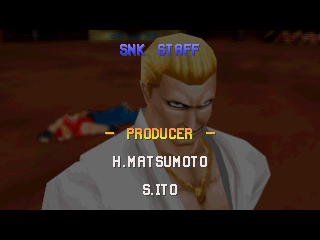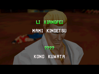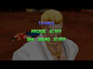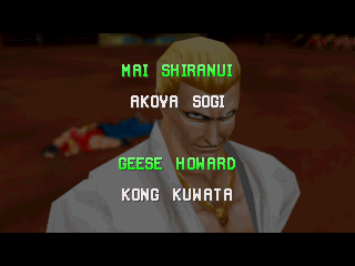 | Terry B. | Andy B. | Billy Kane | Duck King | - Geese H. - | Joe Higashi | Kim K. | | Li Xiangfei | Mai S. | Mr. Karate | R. Yamazaki | Raiden | Toji S. | Tsugumi S. | | - If Geese Was The Last Boss - | If Mr. Karate Was The Last Boss | |