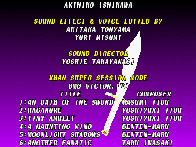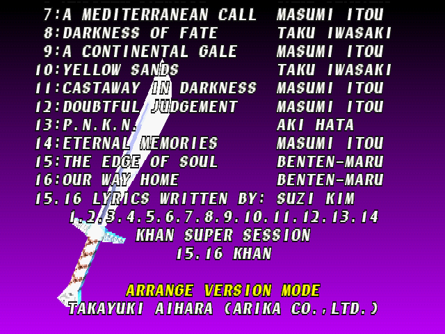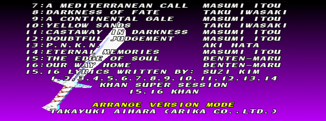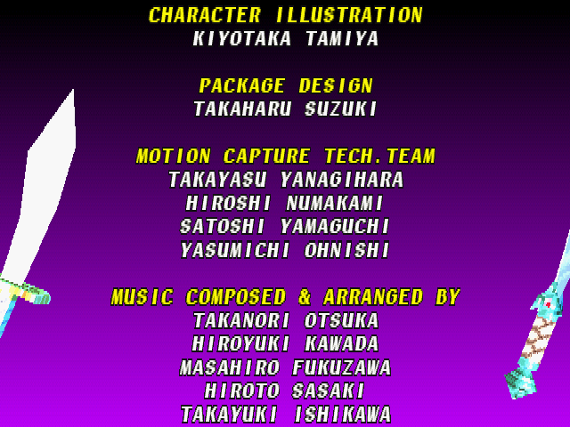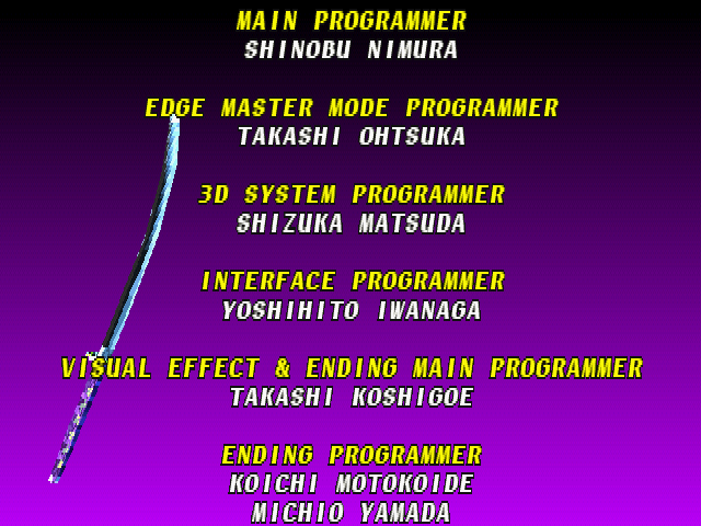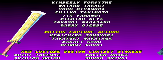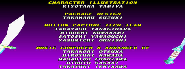 | Cervantes | - Hwang - | Li Long | Mitsurugi | Rock | Seung Mina | Siegfried | Sophitia | Taki | Voldo | | Arcade Mode | Time Attack Mode | - Edge Master Mode - | |