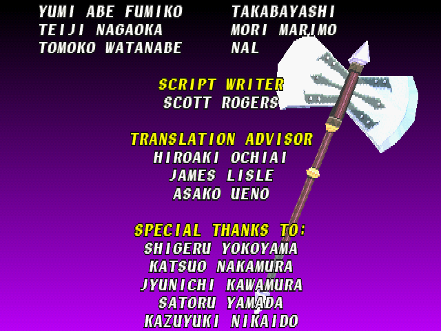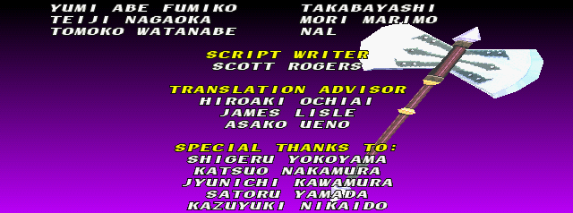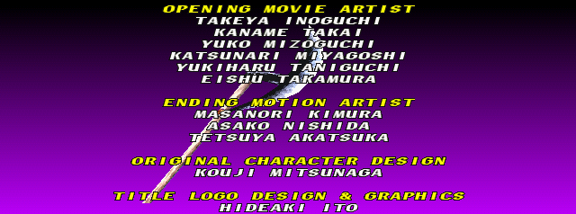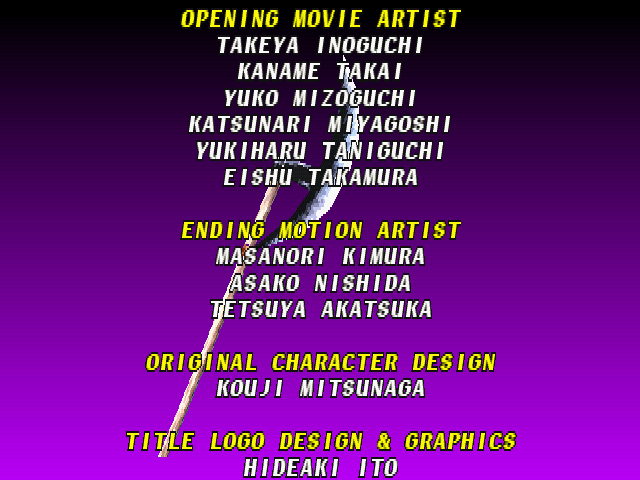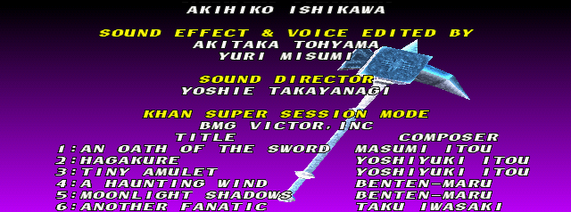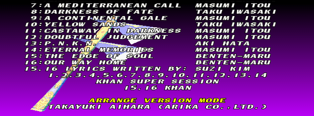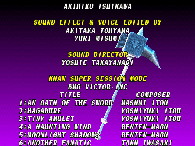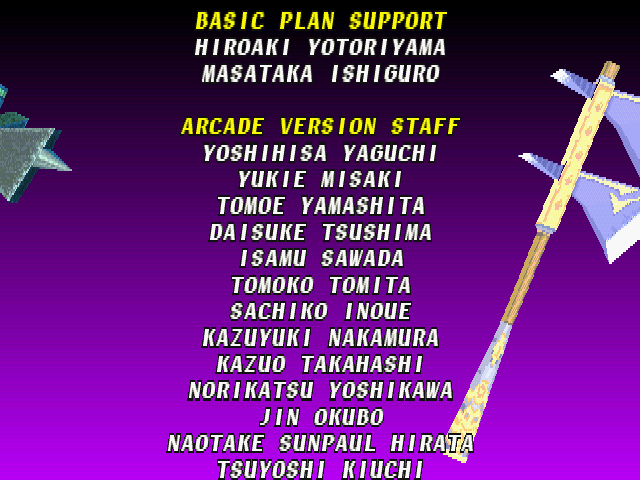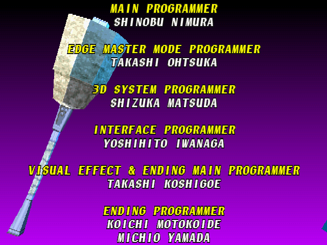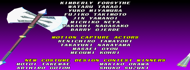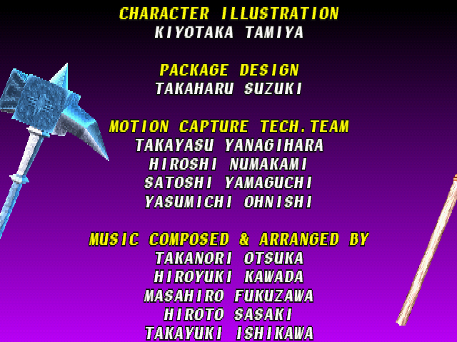 | Cervantes | Hwang | Li Long | Mitsurugi | - Rock - | Seung Mina | Siegfried | Sophitia | Taki | Voldo | | Arcade Mode | Time Attack Mode | - Edge Master Mode - | |