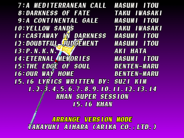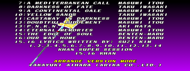 | Cervantes | Hwang | Li Long | Mitsurugi | Rock | - Seung Mina - | Siegfried | Sophitia | Taki | Voldo | | Arcade Mode | Time Attack Mode | - Edge Master Mode - | |