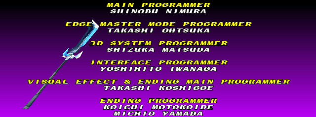 | Home | BackTweet | Arcade Mode | Time Attack Mode | - Edge Master Mode - | | Cervantes | Hwang | Li Long | Mitsurugi | Rock | - Seung Mina - | Siegfried | Sophitia | Taki | Voldo |