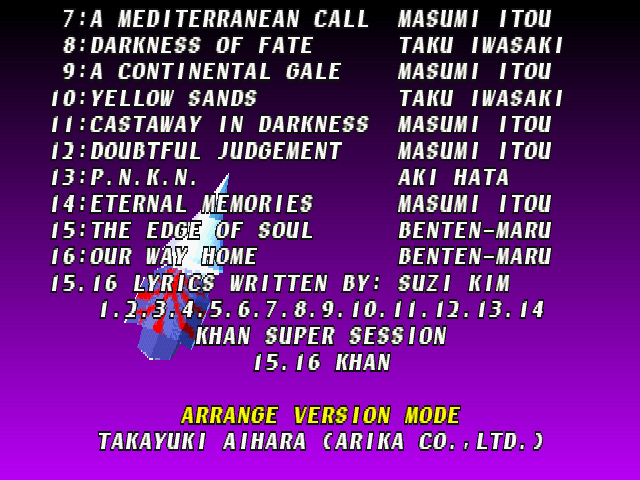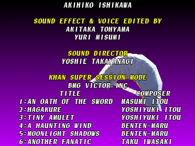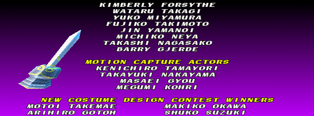 | Cervantes | Hwang | Li Long | Mitsurugi | Rock | Seung Mina | Siegfried | Sophitia | Taki | - Voldo - | | Arcade Mode | Time Attack Mode | - Edge Master Mode - | |