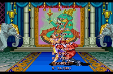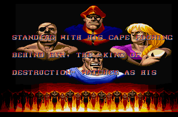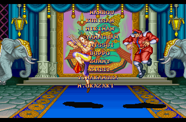 | Ryu | Ken | Chun Li | Guile | E.Honda | Zangief | | Blanka | Dhalsim | Balrog | Vega | Sagat | - M.Bison - | | Street Fighter II' The World Warrior | - Street Fighter II' Champion Edition - | Street Fighter II' Hyper Fighting | |