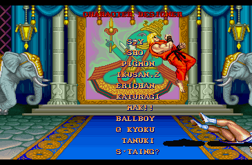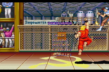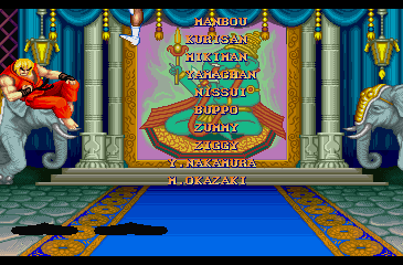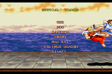 | Ryu | Ken | - Chun Li - | Guile | E.Honda | Zangief | | Blanka | Dhalsim | Balrog | Vega | Sagat | M.Bison | | Street Fighter II' The World Warrior | - Street Fighter II' Champion Edition - | Street Fighter II' Hyper Fighting | |