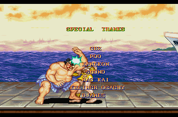 | Ryu | Ken | Chun Li | Guile | - E.Honda - | Zangief | | Blanka | Dhalsim | Balrog | Vega | Sagat | M.Bison | | Street Fighter II' The World Warrior | - Street Fighter II' Champion Edition - | Street Fighter II' Hyper Fighting | |