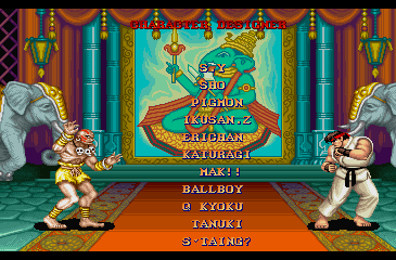 | Ryu | Ken | Chun Li | Guile | | E.Honda | Zangief | Blanka | - Dhalsim - | | - Street Fighter II' The World Warrior - | Street Fighter II' Champion Edition | Street Fighter II' Hyper Fighting | |