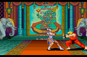 | Ryu | - Ken - | Chun Li | Guile | | E.Honda | Zangief | Blanka | Dhalsim | | - Street Fighter II' The World Warrior - | Street Fighter II' Champion Edition | Street Fighter II' Hyper Fighting | |
