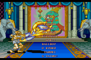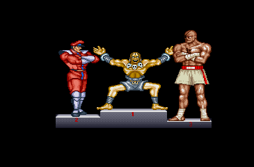 | Ryu | Ken | Chun Li | Guile | Blanka | - Dhalsim - | | E.Honda | Zangief | Balrog | Vega | Sagat | M.Bison | | Street Fighter II' The World Warrior | Street Fighter II' Champion Edition | - Street Fighter II' Hyper Fighting - | |