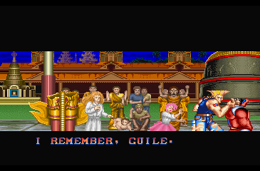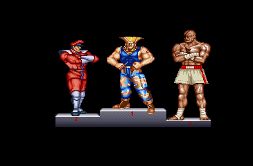 | Ryu | Ken | Chun Li | - Guile - | Blanka | Dhalsim | | E.Honda | Zangief | Balrog | Vega | Sagat | M.Bison | | Street Fighter II' The World Warrior | Street Fighter II' Champion Edition | - Street Fighter II' Hyper Fighting - | |