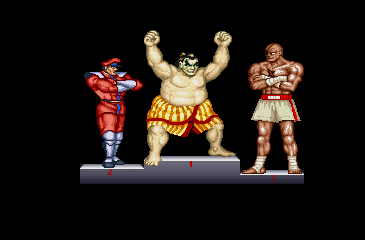 | Ryu | Ken | Chun Li | Guile | Blanka | Dhalsim | | - E.Honda - | Zangief | Balrog | Vega | Sagat | M.Bison | | Street Fighter II' The World Warrior | Street Fighter II' Champion Edition | - Street Fighter II' Hyper Fighting - | |