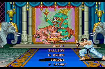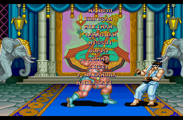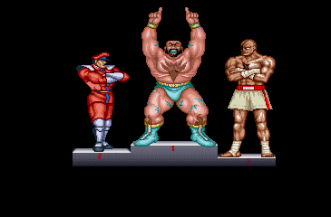 | Ryu | Ken | Chun Li | Guile | Blanka | Dhalsim | | E.Honda | - Zangief - | Balrog | Vega | Sagat | M.Bison | | Street Fighter II' The World Warrior | Street Fighter II' Champion Edition | - Street Fighter II' Hyper Fighting - | |
