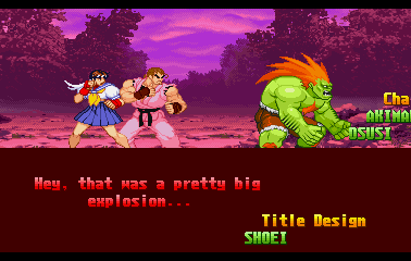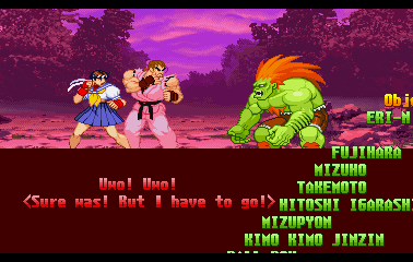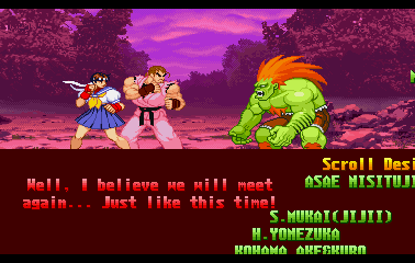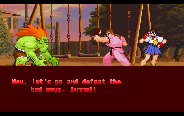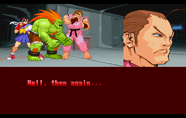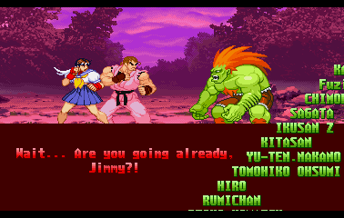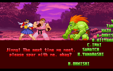 | Ryu | Evil Ryu | Ken | Guile | Charlie | Chun Li | Guy | Cody | - Blanka - | Dee Jay | Dhalsim | E.Honda | Fei Long | Gen | Juli | Juni | Karin | R.Mika | | Rolento | Rose | Sakura | Sodom | T.Hawk | Zangief | Dan | Cammy | Birdie | Adon | Balrog | Vega | Sagat | M.Bison | Akuma / Shin Akuma | | - Good Ending - | Bad Ending | | - Arcade Mode - | World Tour | Survival Mode | Dramatic Battle | |