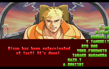 | Ryu | Evil Ryu | Ken | Guile | - Charlie - | Chun Li | Guy | Cody | Blanka | Dee Jay | Dhalsim | E.Honda | Fei Long | Gen | Juli | Juni | Karin | R.Mika | | Rolento | Rose | Sakura | Sodom | T.Hawk | Zangief | Dan | Cammy | Birdie | Adon | Balrog | Vega | Sagat | M.Bison | Akuma / Shin Akuma | | - Good Ending - | Bad Ending | | - Arcade Mode - | World Tour | Survival Mode | Dramatic Battle | |