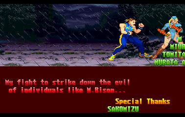 | Ryu | Evil Ryu | Ken | Guile | Charlie | - Chun Li - | Guy | Cody | Blanka | Dee Jay | Dhalsim | E.Honda | Fei Long | Gen | Juli | Juni | Karin | R.Mika | | Rolento | Rose | Sakura | Sodom | T.Hawk | Zangief | Dan | Cammy | Birdie | Adon | Balrog | Vega | Sagat | M.Bison | Akuma / Shin Akuma | | - Good Ending - | Bad Ending | | - Arcade Mode - | World Tour | Survival Mode | Dramatic Battle | |