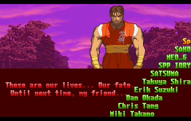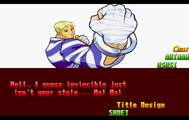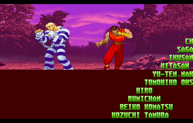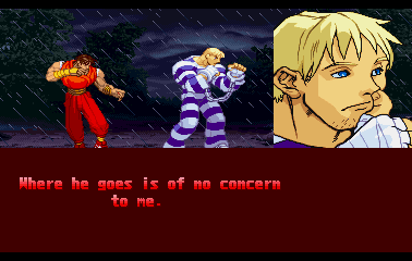 | Ryu | Evil Ryu | Ken | Guile | Charlie | Chun Li | Guy | - Cody - | Blanka | Dee Jay | Dhalsim | E.Honda | Fei Long | Gen | Juli | Juni | Karin | R.Mika | | Rolento | Rose | Sakura | Sodom | T.Hawk | Zangief | Dan | Cammy | Birdie | Adon | Balrog | Vega | Sagat | M.Bison | Akuma / Shin Akuma | | - Good Ending - | Bad Ending | | - Arcade Mode - | World Tour | Survival Mode | Dramatic Battle | |