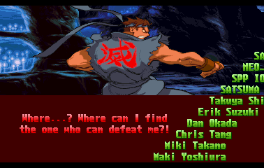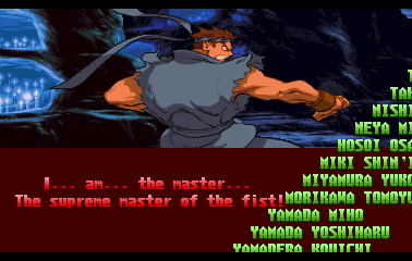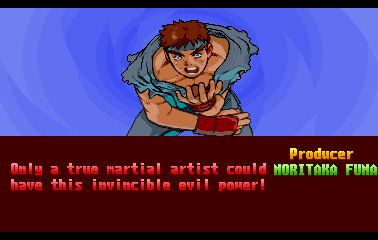 | Ryu | - Evil Ryu - | Ken | Guile | Charlie | Chun Li | Guy | Cody | Blanka | Dee Jay | Dhalsim | E.Honda | Fei Long | Gen | Juli | Juni | Karin | R.Mika | | Rolento | Rose | Sakura | Sodom | T.Hawk | Zangief | Dan | Cammy | Birdie | Adon | Balrog | Vega | Sagat | M.Bison | Akuma / Shin Akuma | | - Good Ending - | Bad Ending | | - Arcade Mode - | World Tour | Survival Mode | Dramatic Battle | |