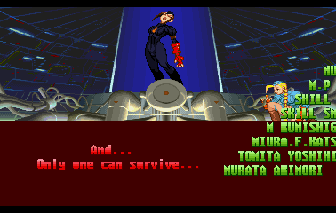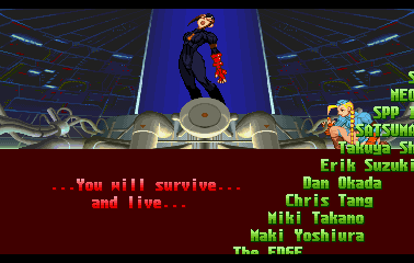 | Ryu | Evil Ryu | Ken | Guile | Charlie | Chun Li | Guy | Cody | Blanka | Dee Jay | Dhalsim | E.Honda | Fei Long | Gen | - Juli - | Juni | Karin | R.Mika | | Rolento | Rose | Sakura | Sodom | T.Hawk | Zangief | Dan | Cammy | Birdie | Adon | Balrog | Vega | Sagat | M.Bison | Akuma / Shin Akuma | | - Good Ending - | Bad Ending | | - Arcade Mode - | World Tour | Survival Mode | Dramatic Battle | |