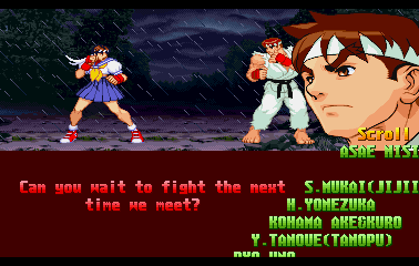 | Home | BackTweet | - Arcade Mode - | World Tour | Survival Mode | Dramatic Battle | | - Good Ending - | Bad Ending | | Ryu | Evil Ryu | Ken | Guile | Charlie | Chun Li | Guy | Cody | Blanka | Dee Jay | Dhalsim | E.Honda | Fei Long | Gen | Juli | Juni | Karin | R.Mika | | Rolento | Rose | - Sakura - | Sodom | T.Hawk | Zangief | Dan | Cammy | Birdie | Adon | Balrog | Vega | Sagat | M.Bison | Akuma / Shin Akuma |