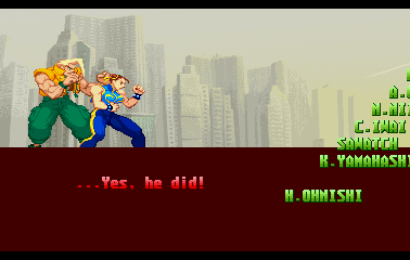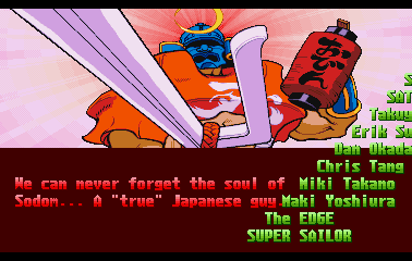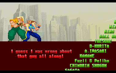 | Ryu | Evil Ryu | Ken | Guile | Charlie | Chun Li | Guy | Cody | Blanka | Dee Jay | Dhalsim | E.Honda | Fei Long | Gen | Juli | Juni | Karin | R.Mika | | Rolento | Rose | Sakura | - Sodom - | T.Hawk | Zangief | Dan | Cammy | Birdie | Adon | Balrog | Vega | Sagat | M.Bison | Akuma / Shin Akuma | | - Good Ending - | Bad Ending | | - Arcade Mode - | World Tour | Survival Mode | Dramatic Battle | |