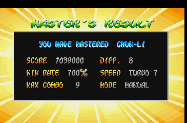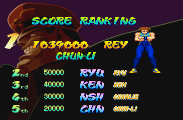 | Adon | Akuma | Birdie | Charlie | - Chun-Li - | Dan | Guy | Ken | M.Bison | Rose | Ryu | Sagat | Sodom | | - 4-8 Star Difficulty - | 1-3 Star Difficulty | | - If The Regular Last Boss Is Fought - | If Akuma Is The Last Boss | |