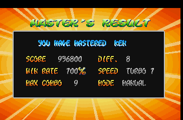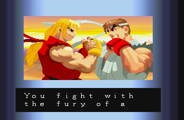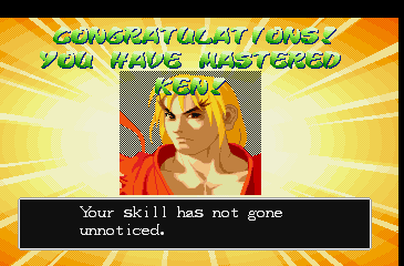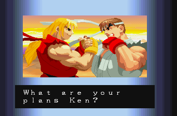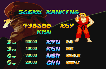 | Adon | Akuma | Birdie | Charlie | Chun-Li | Dan | Guy | - Ken - | M.Bison | Rose | Ryu | Sagat | Sodom | | - 4-8 Star Difficulty - | 1-3 Star Difficulty | | - If The Regular Last Boss Is Fought - | If Akuma Is The Last Boss | |