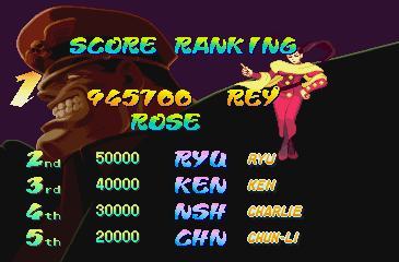 | Adon | Akuma | Birdie | Charlie | Chun-Li | Dan | Guy | Ken | M.Bison | - Rose - | Ryu | Sagat | Sodom | | - 4-8 Star Difficulty - | 1-3 Star Difficulty | | - If The Regular Last Boss Is Fought - | If Akuma Is The Last Boss | |
